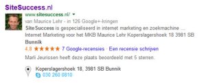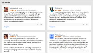 Bovendien worden de recensies die bijvoorbeeld klant Jansen schrijft, ook getoond op de Google+ pagina van klant Jansen. Al met al zeer transparant dus.